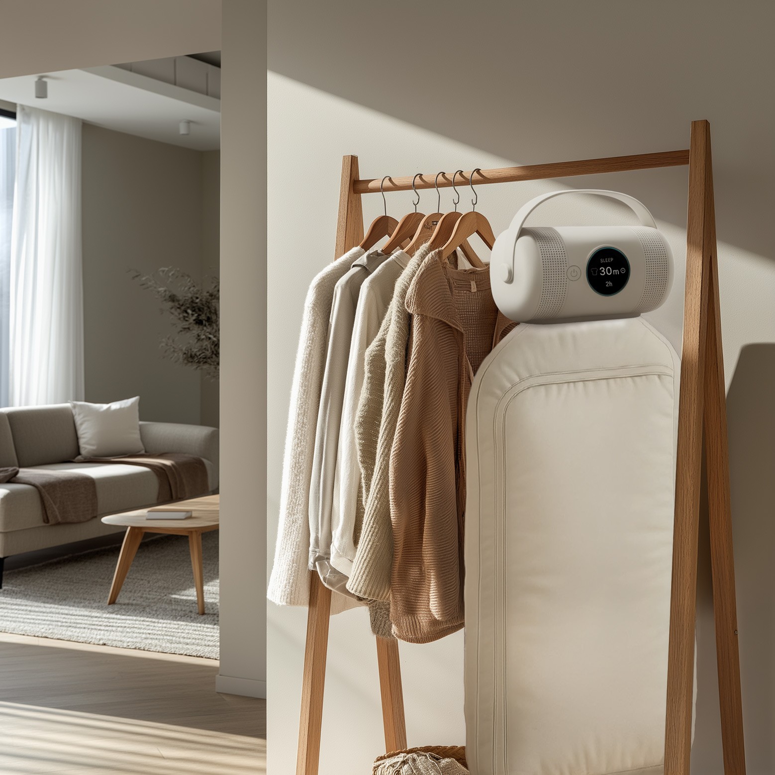 KYRROX runs at around 44 dB (similar to a quiet fan) making it a quiet portable clothes dryer well suited for apartments, bedrooms, and shared living spaces.